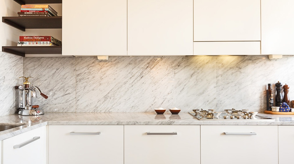 Visserligen inte lika snyggt som Carraramarmor, men nästan, är Silestone som är en mycket tåligare kvartskomposit som går att få i en mängd färger/mönster (inklusive en blankpolerad variant som nästan ser ut som äkta marmor). Var också inne på marmorbänkar och stänskydd i köket jag håller på att planera men valde till slut en Silestonevariant som liknar polerad betong (snyggare än det låter). Tror det kommer bli kanonbra och behöver inte oroa mig för att fläcka skivan med syra.