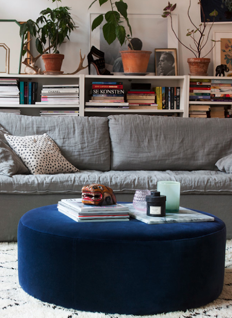 Hej onsdag! Idag skall jag hylla puffarna, dessa lättplacerade små smycken till möbler som gör varje halvfärdigt vardagsrum komplett. Jag skall alltså puffa för dem, därav den göteborgska titeln idag ;) Ett stort vardagsrum som avslutas tvärt med öppen yta på andra sidan soffbordet, känns ofta naket och ofärdigt. En mycket enkel lösning att få det mer ombonat är att ställa en ordentligt stor puff (ca 70-80 cm om det får plats) lite nonchalant på mattan. Den kan givetvis ha färg, plocka då upp något från dekorkuddarna i soffan.